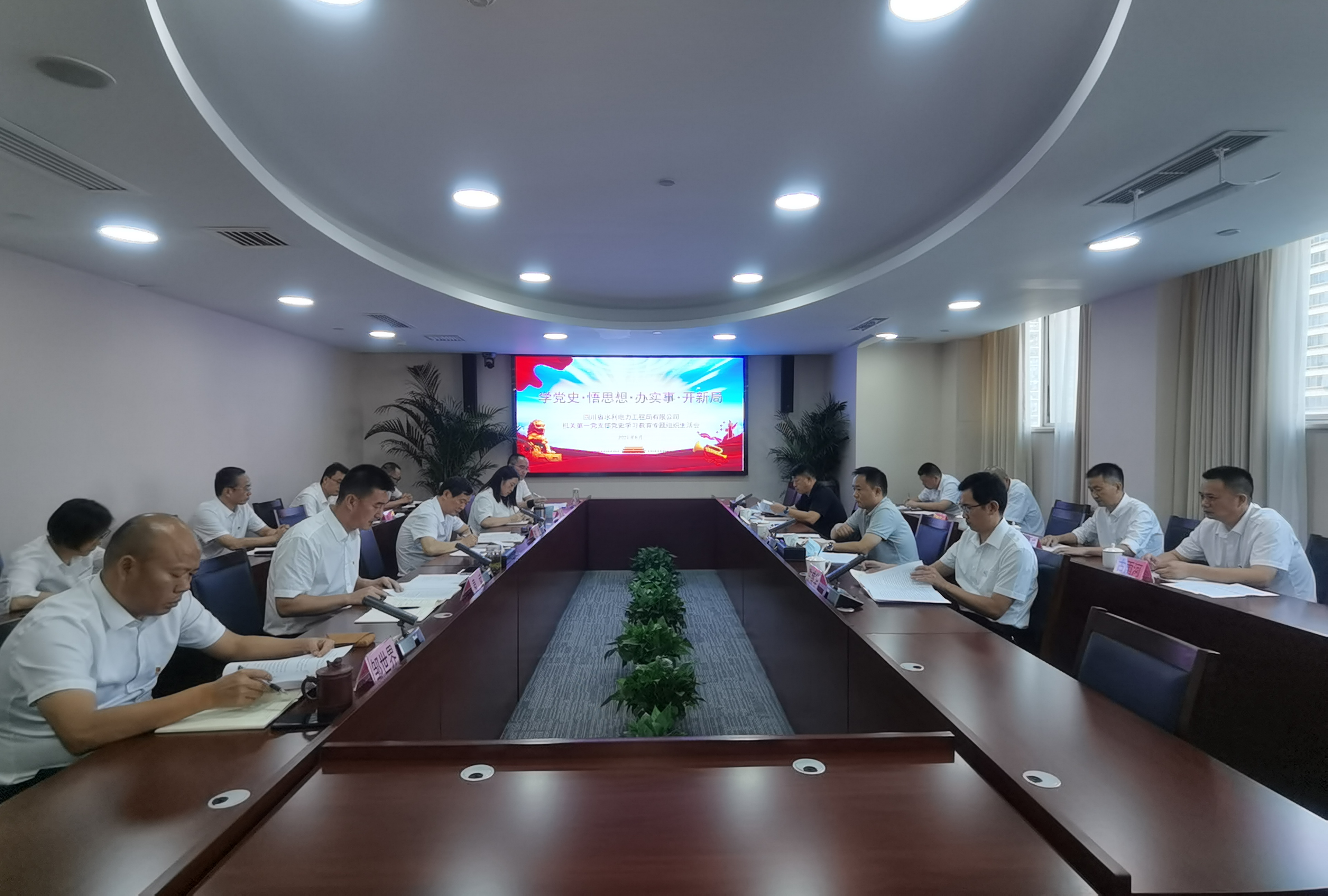 2021年8月13日,四川省水利電力工程局有限公司機關第一黨支部在成都總部召開黨史學習教育專題組織生活會。省水發集團紀委書記吳軍,集團紀檢監察部部長王欣蒞臨指導。工程局公司紀委書記、黨史學習教育督導組組長陳盛華到會督導。公司黨委副書記、總經理袁斌,副總經理鄒世界以普通黨員身份參加會議。公司機關第一黨支部書記陳章主持會議,支部全體黨員參加會議。