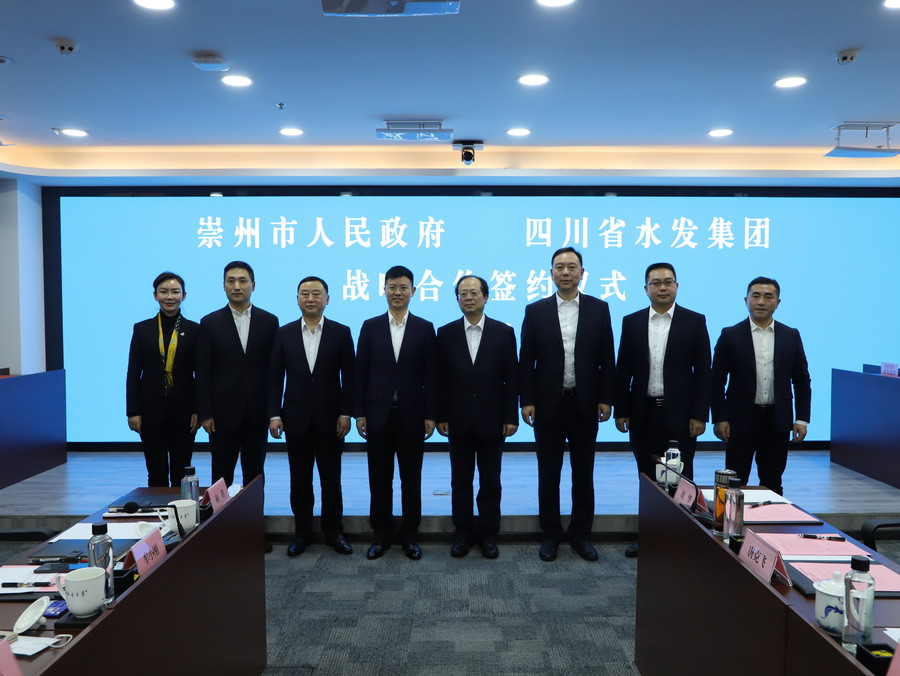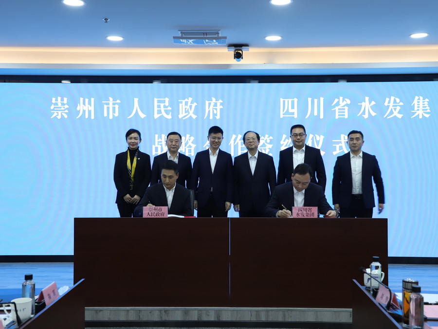 集團領導尹曉東、水發投資公司領導郎波,崇州市領導毛向陽、王峰、張萍、張曉林參加了簽約儀式。