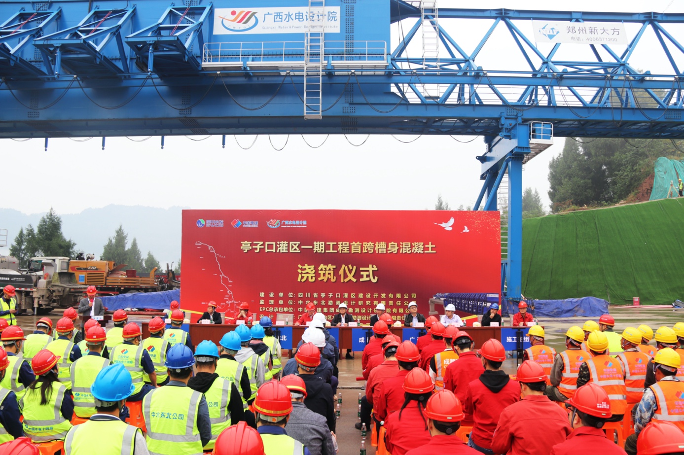 進入四季度,亭子口灌區建設者銳意進取、實干篤行,持續奮戰項目一線,項目取得重大進展,迎來關鍵節點。10月25日上午,隨著第一車混凝土入倉,亭子口灌區一期工程第Ⅲ標唐家溝渡槽啟動首跨槽身混凝土澆筑,工程全線首臺DZ50-1800型造槽機正式始發,標志著一期工程高大渡槽施工正式邁入槽身施工工序。這一新階段的順利開啟,對于確保高大渡槽的施工安全和質量,加速施工進度以及提升經濟效益都具有重要意義。