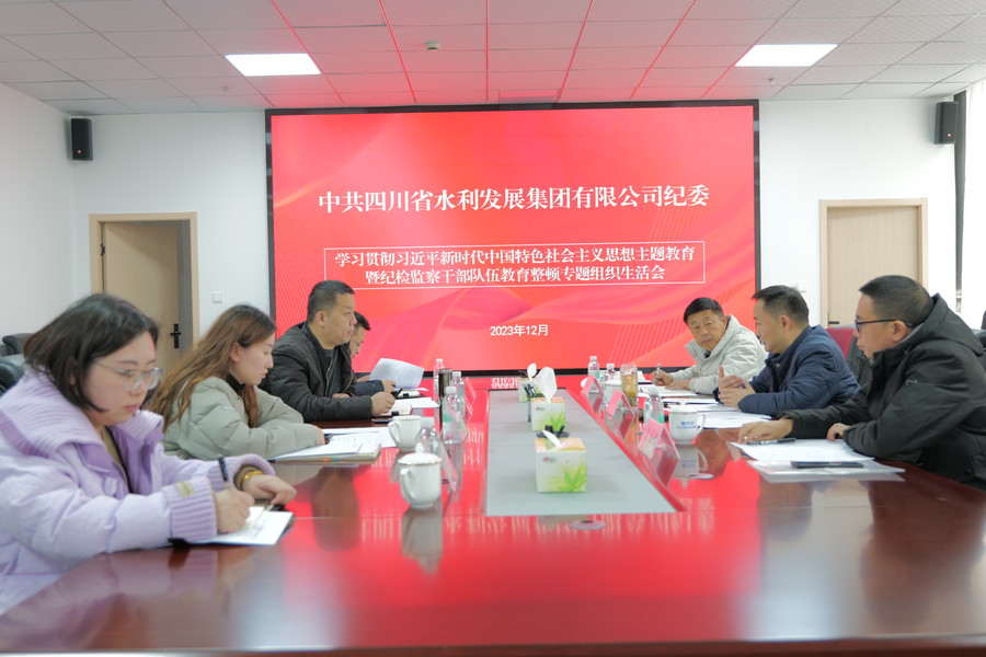 12月25日,按照四川省水利廳直屬機關紀委干部隊伍教育整頓領導小組的要求,集團紀委組織召開學習貫徹習近平新時代中國特色社會主義思想主題教育暨紀檢監察干部隊伍整頓專題組織生活會。集團紀檢監察部部長王欣主持會議,集團黨委委員、紀委書記吳軍作總結講話。