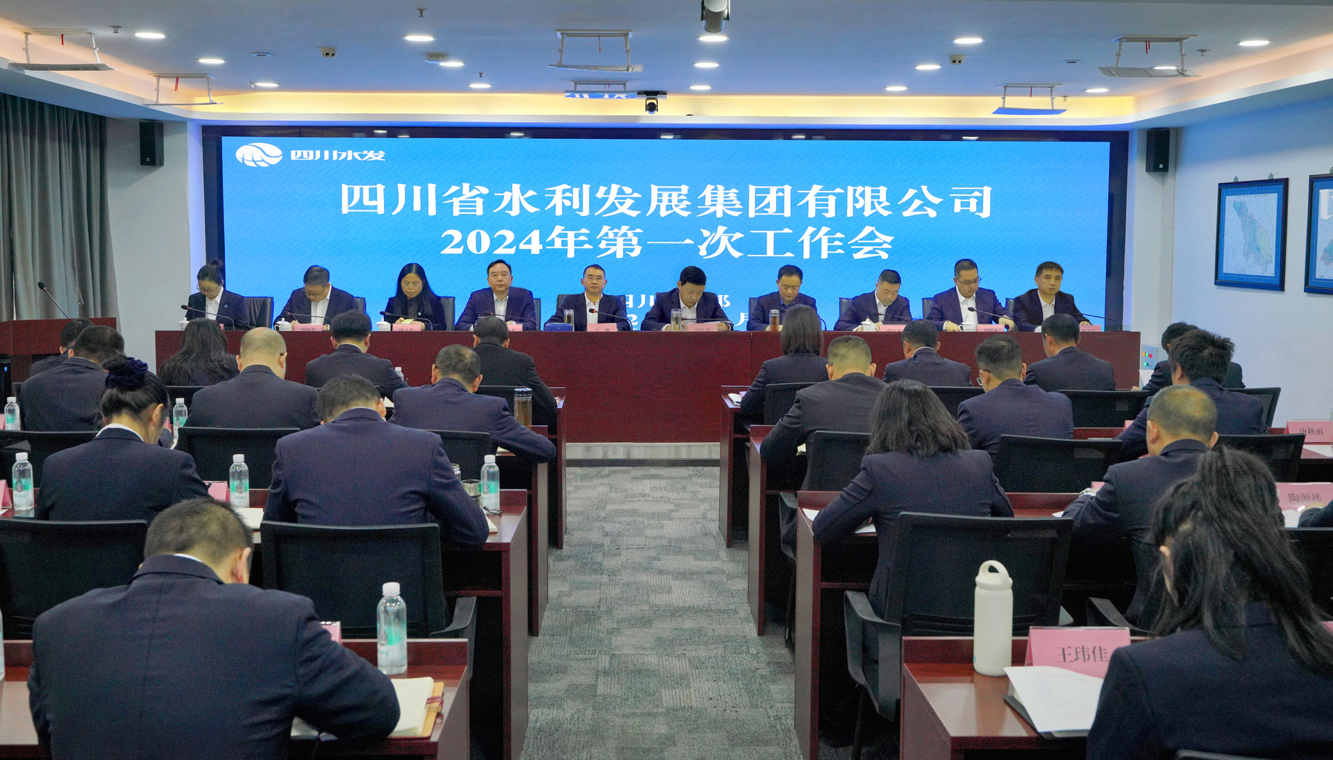 2月26日,四川省水發(fā)集團召開2024年第一次工作會,深入貫徹中央經(jīng)濟工作會議、全國水利工作會議、省委經(jīng)濟工作會等一系列會議精神,傳達落實水利廳2024年第一次廳機關(guān)干部職工會議精神,牢記使命、砥礪奮進,扎實推進全年各項目標任務(wù)落地落實,向高質(zhì)量發(fā)展進軍吹響奮進號、沖鋒號,確保集團成功從“三年上臺階”邁向“五年大發(fā)展”。集團黨委書記、董事長王華出席會議并講話,集團黨委副書記、副董事長、總經(jīng)理向仕春主持會議。