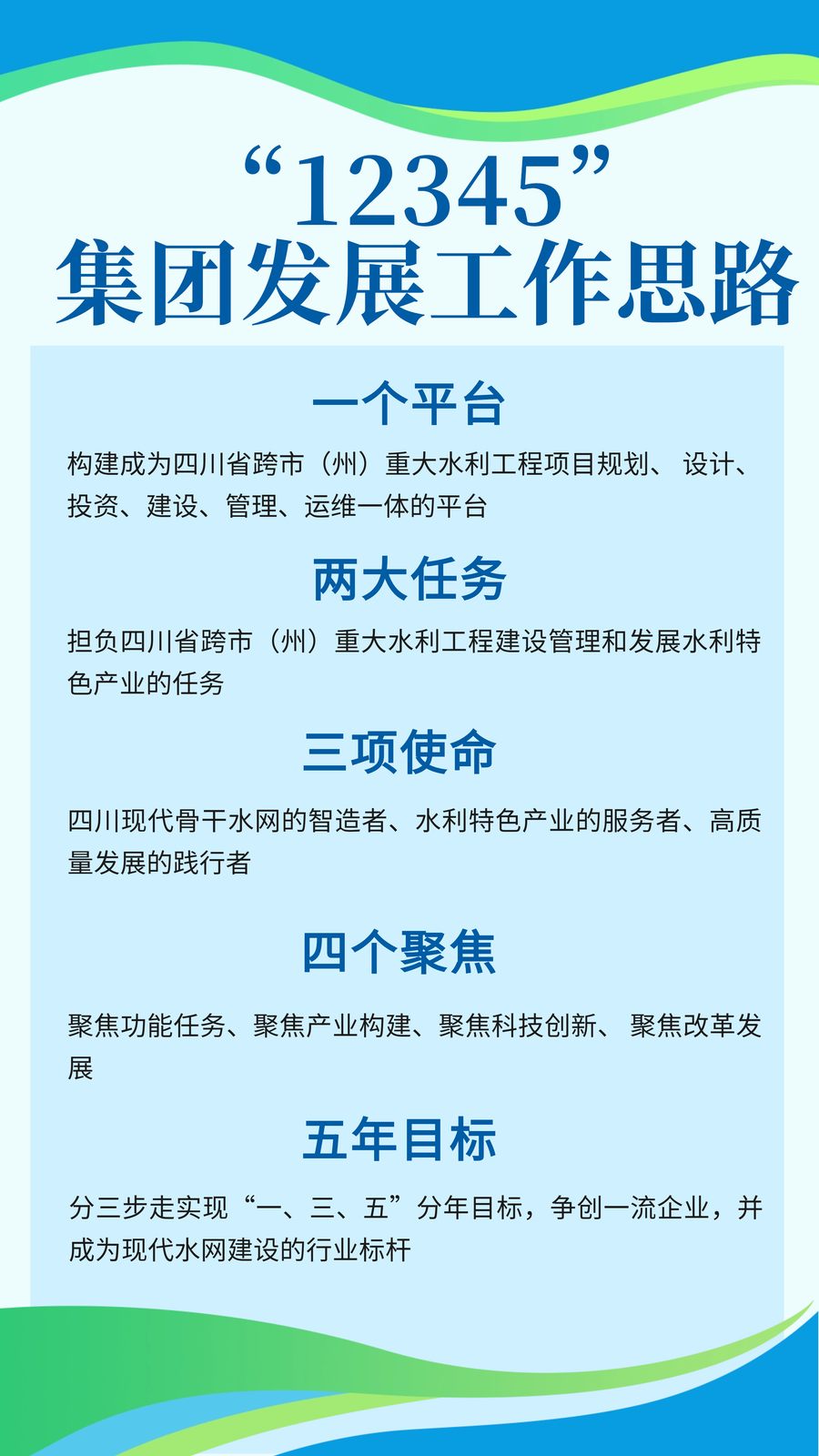 他要求,全體干部職工要深刻領(lǐng)會集團高質(zhì)量發(fā)展實施路徑,發(fā)揚“三敢三善”精神,把省委省政府和廳黨組下達集團的各項目標刻在心上,以龍吟虎嘯的精神、龍騰虎躍的干勁,聚焦聚神聚力把各項工作抓實、抓好,努力干出重大水利工程高效推進的新階段,拼出特色產(chǎn)業(yè)發(fā)展的新天地,奮斗出高質(zhì)量發(fā)展的新局面,為四川水利高質(zhì)量發(fā)展作出集團更大貢獻!