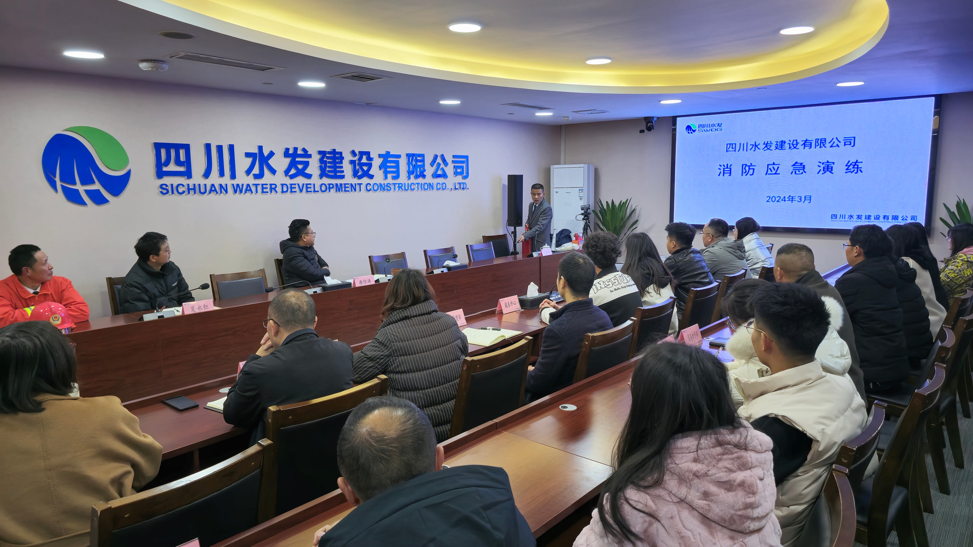 2024年3月1日下午,四川水發建設有限公司成都總部辦公區預設突現火情,現場指揮收到火災預警后立即宣布啟動火災疏散逃生應急預案并報告總指揮,同時指揮應急疏散引導員立刻到達指定位置疏通安全通道,而后協同各方以迅速引導辦公區所有人員撤離的指定安全位置,完成了本次火災疏散逃生演練。
