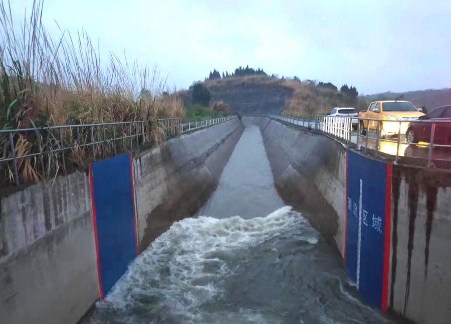 4月6日15:50毗河應急調水運行水頭到達獅子嶺泄水閘