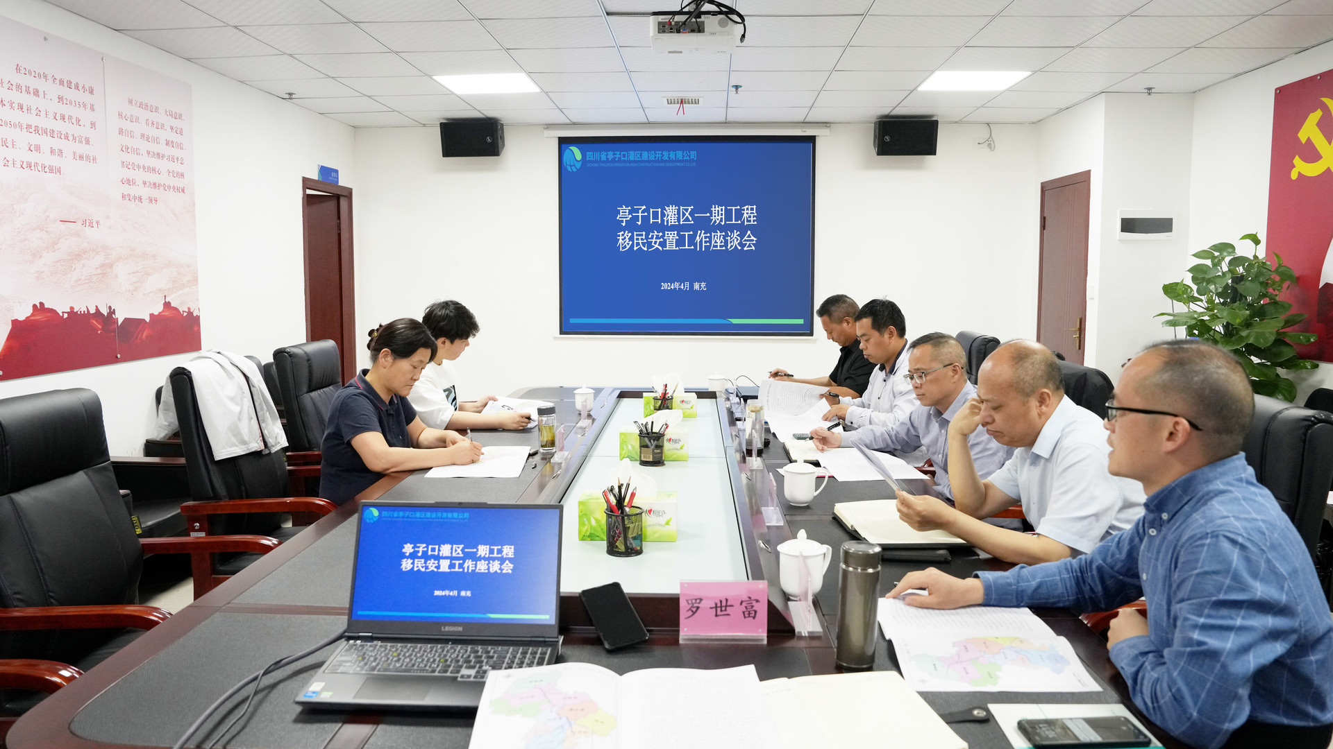 4月16日,水利廳移民安置處二級調(diào)研員劉莉一行到南充調(diào)研亭子口灌區(qū)一期工程移民安置工作并召開座談會。亭子口公司黨委書記、董事長廖建強出席會議,黨委委員、副總經(jīng)理路長青主持會議。
