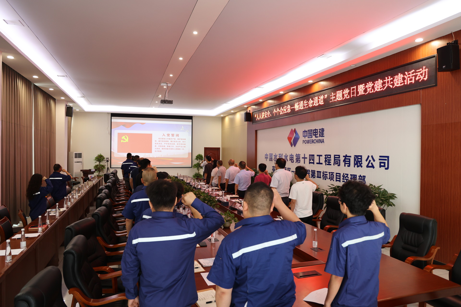 活動伊始,黨支部書記帶領(lǐng)全體黨員面對黨旗重溫了入黨誓詞。隨后,全員深入學(xué)習(xí)領(lǐng)會《習(xí)近平總書記關(guān)于應(yīng)急管理的安全生產(chǎn)重要論述和重要指示批示精神》的摘編;Ⅲ標(biāo)聯(lián)合體安全總監(jiān)帶領(lǐng)學(xué)習(xí)解讀了新《安全生產(chǎn)法》;全體干部職工認(rèn)真觀看了“安全生產(chǎn)月”主題宣傳片、《安全生產(chǎn)責(zé)任在肩》警示教育片。