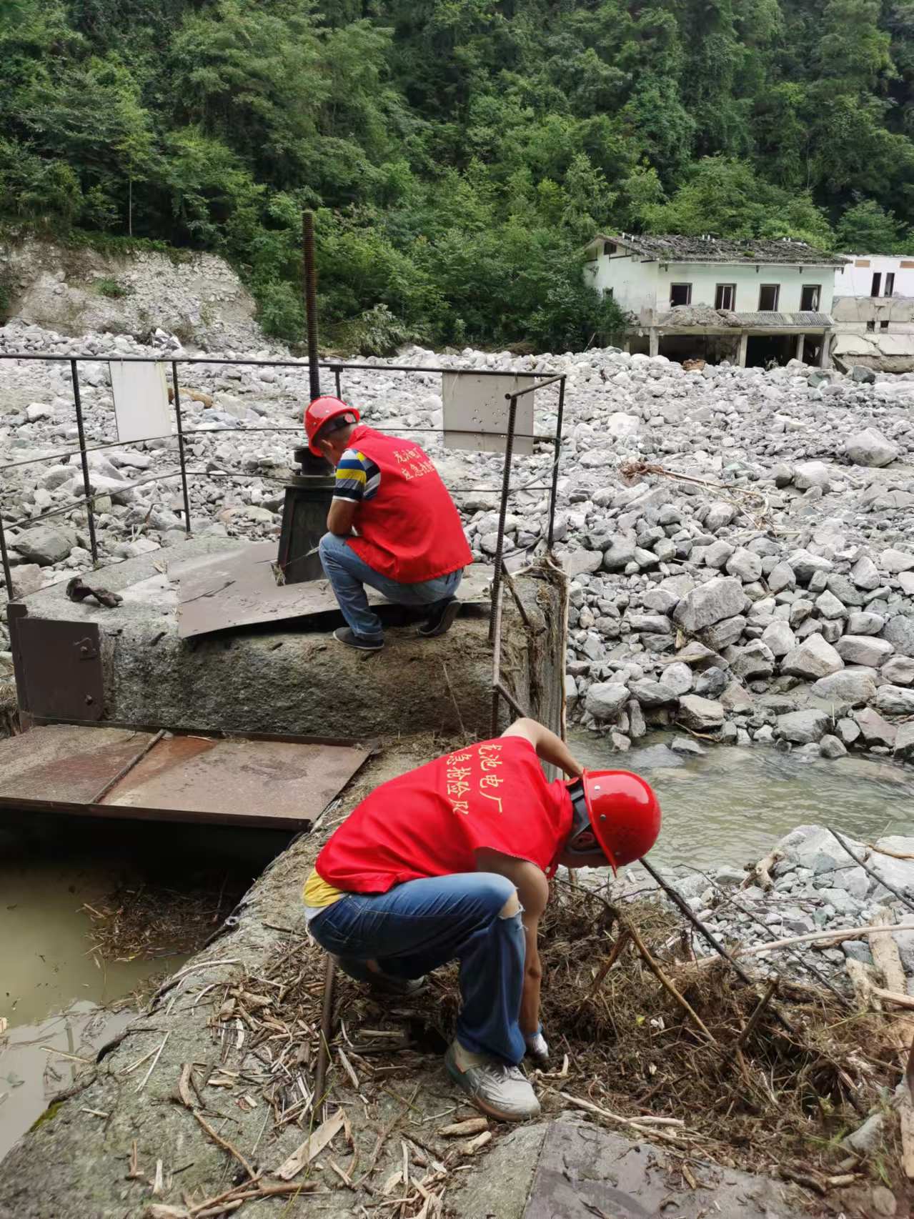 25日上午洪水退去后,電廠迅速組織專業(yè)技術(shù)人員深入災(zāi)區(qū)一線,對取水口、導(dǎo)流明渠等關(guān)鍵設(shè)施進行了全面細致的勘查與評估。面對道路損毀、河道改道、取水口被掩埋的嚴峻形勢,迅速與地方政府、社區(qū)等相關(guān)部門溝通協(xié)調(diào),立即行動恢復(fù)交通,為搶險救災(zāi)創(chuàng)造有利條件。在全面掌握災(zāi)情的基礎(chǔ)上,積極爭取上級領(lǐng)導(dǎo)的支持和幫助,科學(xué)制定了恢復(fù)生產(chǎn)的具體方案,明確復(fù)工的時間節(jié)點,全力以赴投入到恢復(fù)生產(chǎn)的各項工作中。
